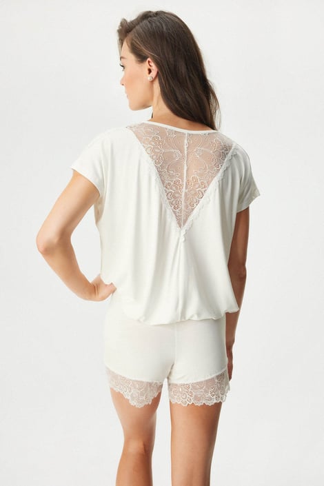 De pyjama Tamara staat synoniem voor elegantie en comfort. Comfortabele losse pasvorm, mooie kanten inzet op de rug en kort broekje. Dat is alles wat nodig is om u vrouwelijk te voelen.